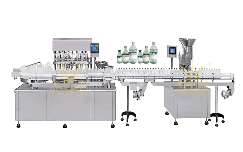 This equipment production line by the rotating disc for bottle machine, filling machine, gasser rolling unit, can match labeling machine wire production, mainly used in pharmaceutical enterprises and large capacity injection production line (agent), filling of veterinary drugs, chemical packing products.